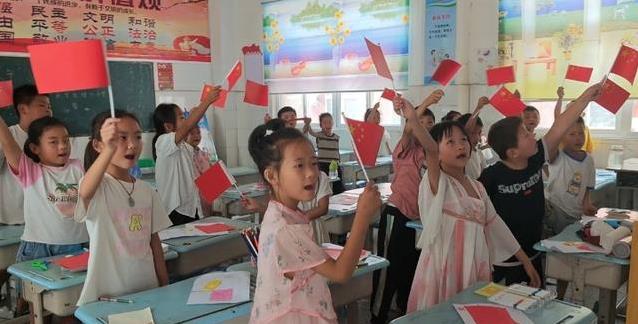 课堂上,爱国教育成了重头戏。队员们讲五星红旗的故事,孩子们听得眼睛都亮了。他们跟着唱国歌,嗓子扯得老高,小手举得笔直,像在向国旗保证要好好长大。有一回,孩子们自己动手做了班旗,还拿着自己画的国旗唱《我和我的祖国》。那场面,谁看了都觉得心里暖乎乎。